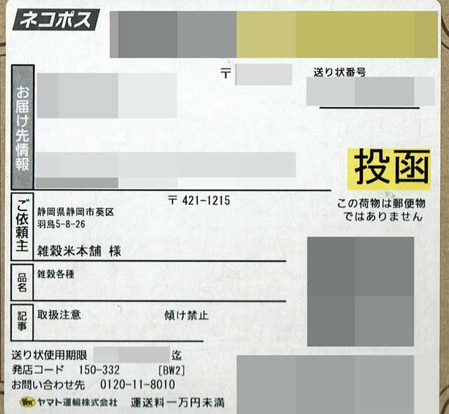 「国産 黒米」を購入しましたが、注文から到着までスムーズでした。ネコポスで届いています。